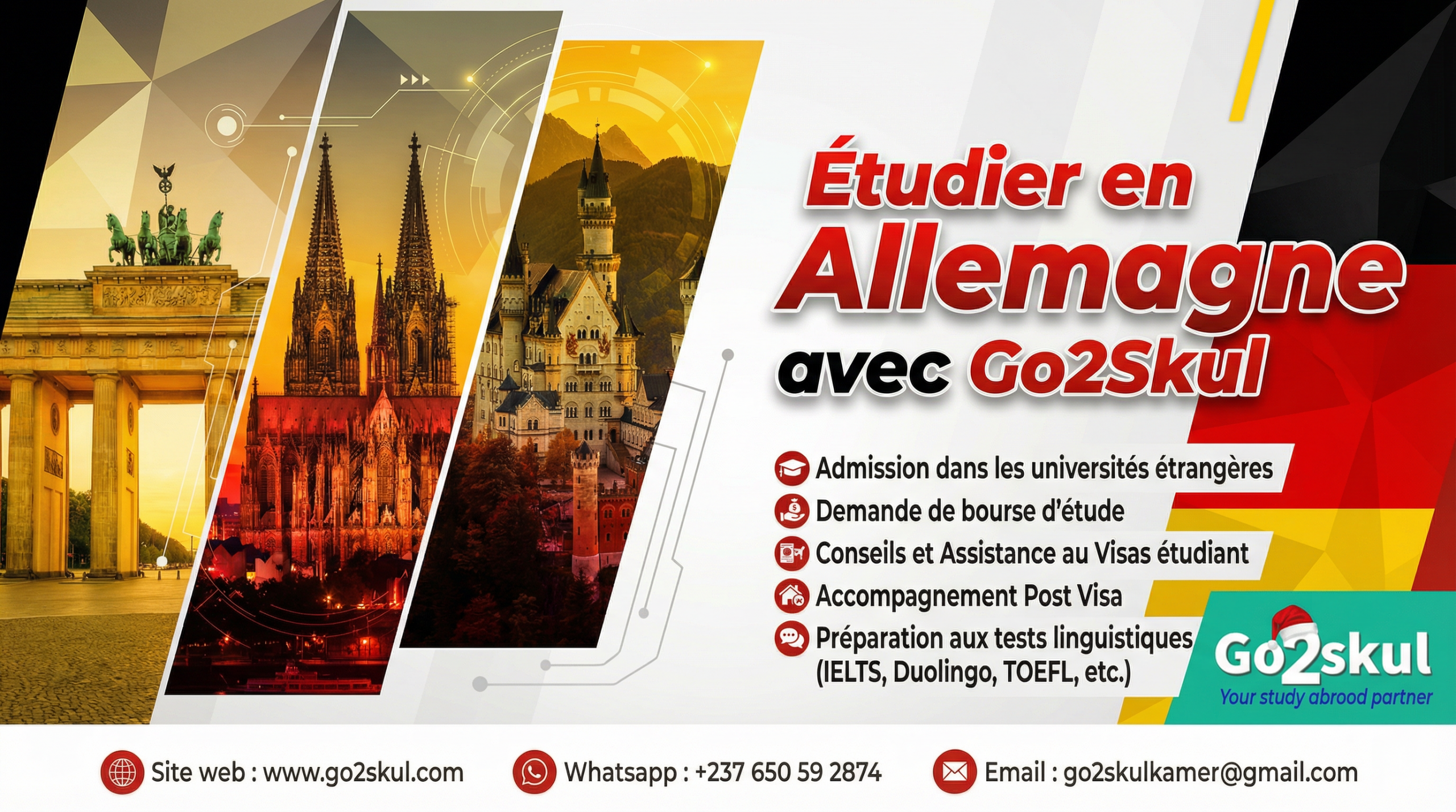 Découvrez l’excellence académique allemande avec Go2skul. Accompagnement visa étudiant Allemagne et admissions depuis le Cameroun.